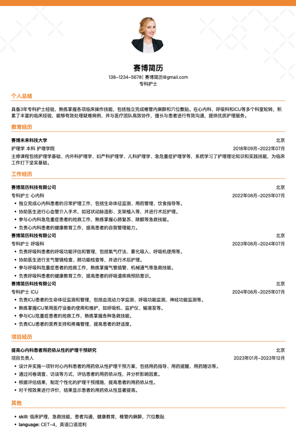 本模板专为拥有5-10年丰富教学经验的高级教师设计,突出展示教学成果、教研能力和教育理念。模板结构完整,重点呈现教学经历、所获荣誉、教研成果以及学生培养成果。适合投递各类学校、教育机构的高级教师、学科带头人等岗位。模板设计庄重专业,能够有效展现您的教学水平和教育情怀,帮助您在教育行业求职中展现专业优势,获得学校领导和HR的认可。