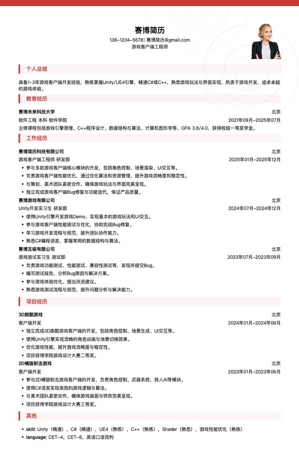 游戏客户端工程师简历模板 | 免费游戏简历制作下载_赛博简历