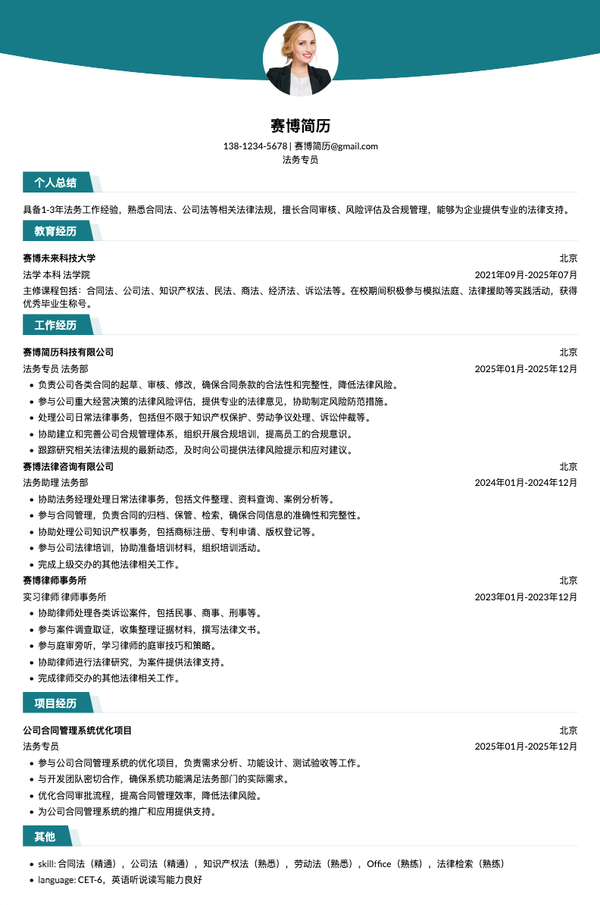 法务专员简历模板 | 免费法律简历制作下载_赛博简历