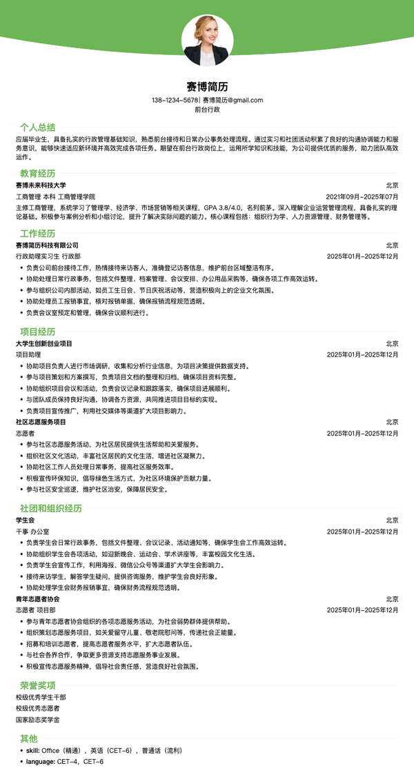 本简历模板专为2025届客服专员应届生量身定制,采用服务专业版式设计,突出客户服务、沟通能力、学习能力等核心优势。模板结构合理,能够清晰展示客服相关项目经验、实习经历、服务能力等关键信息。无论是投递客服专员、客户服务、在线客服等相关岗位,都能帮助应届生系统呈现服务能力和专业素养,让HR快速了解你的专业基础和发展潜力。