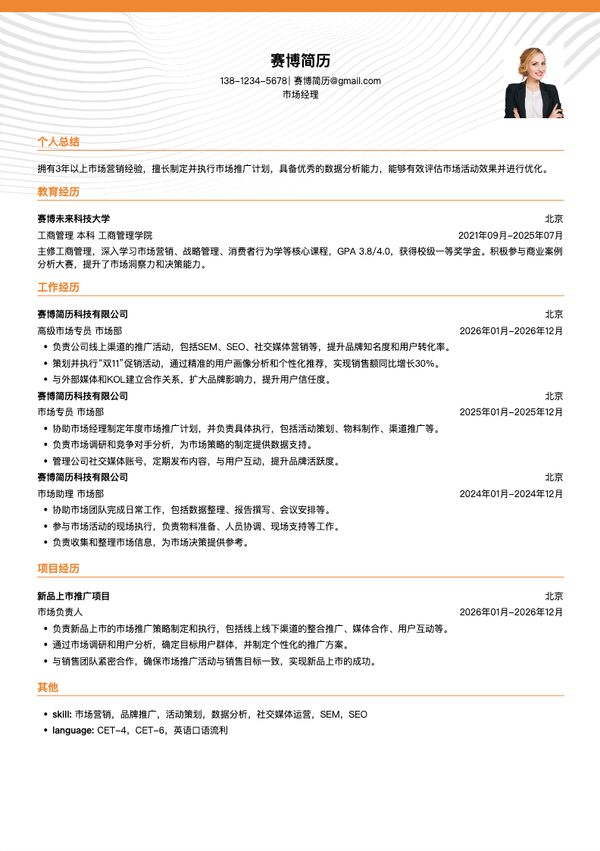 市场经理简历模板